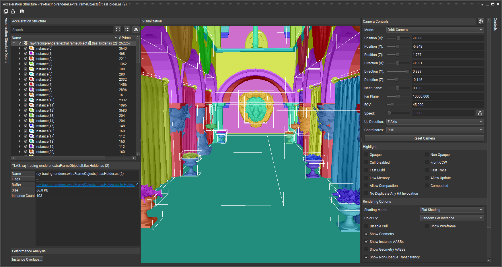 Our acceleration structures shown within NVIDIA Nsight Graphics.
